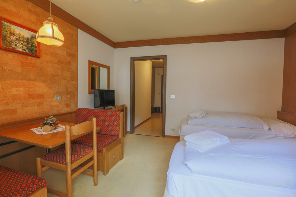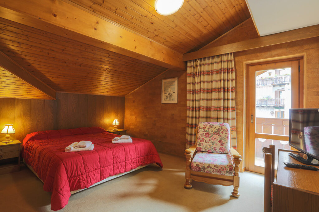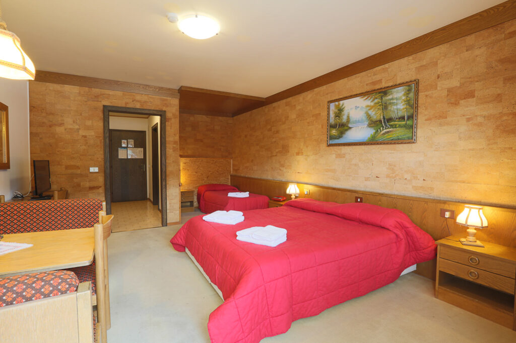 Spaziose, confortevoli e luminose, arredate con gusto in stile alpino, con letto matrimoniale più terzo letto, tavolo lettura, bagno con box doccia, alcune con terrazzo sono inoltre dotate di TV Led e telefono.